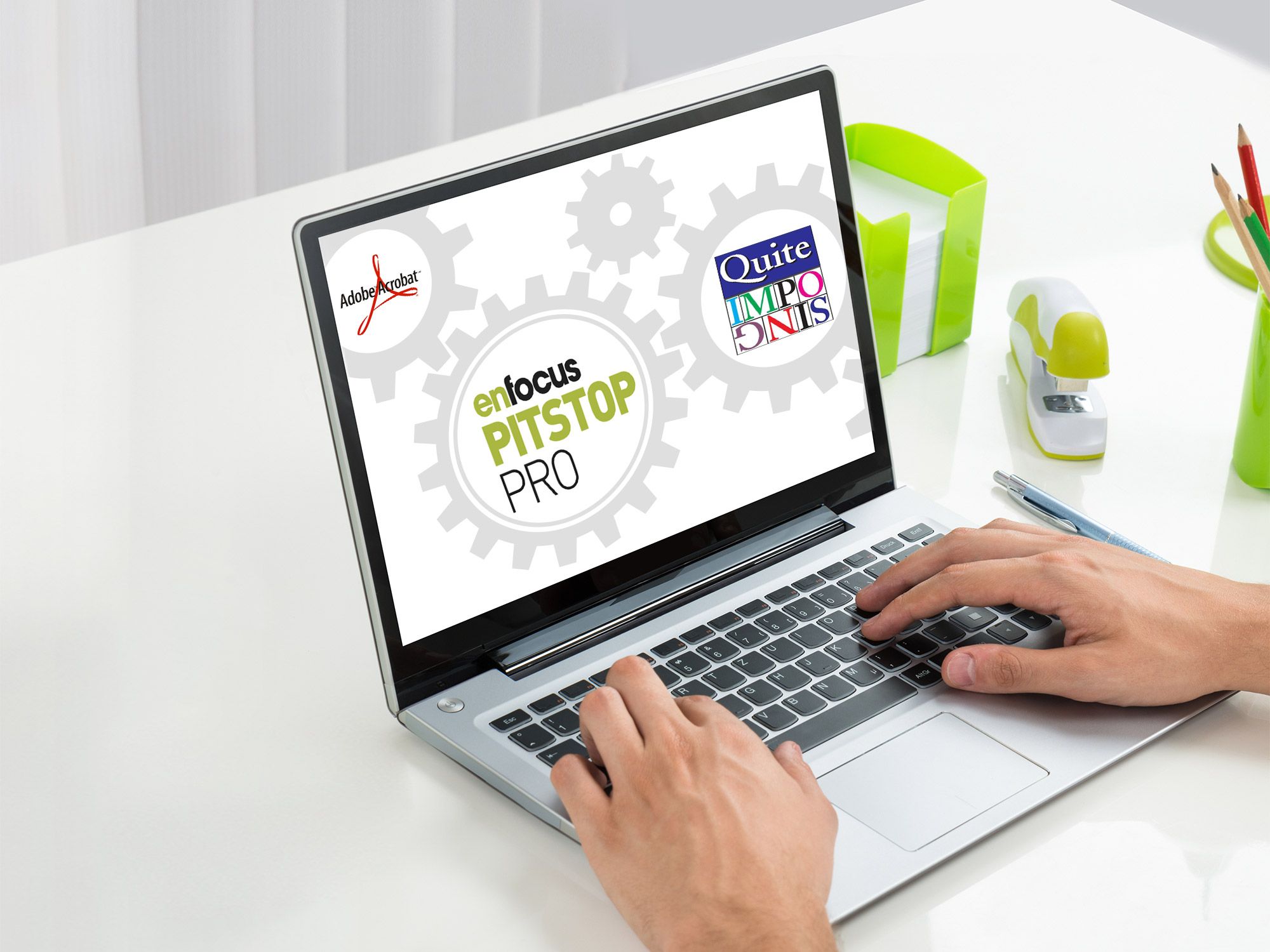 Adobe Acrobat come elemento chiave, quindi, ma non unico protagonista dei processi di prestampa. Altri due plug-in giocano infatti un ruolo fondamentale nell’ottimizzazione del lavoro: Enfocus Pitstop PRO e Quite Imposing Plus 5.